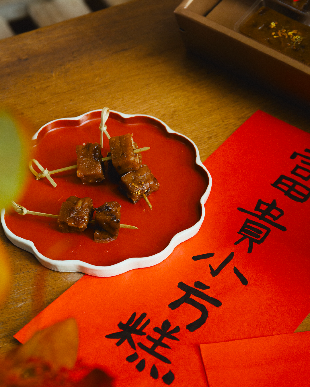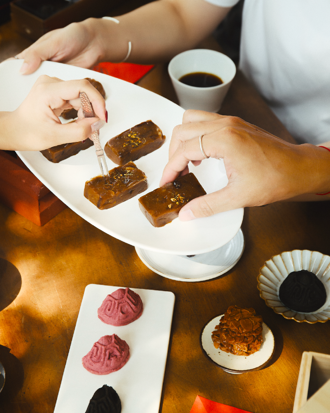 台中沙鹿喜豐香1985二代傳承,餅藝師選用糯米慢火烹製,高粱酒浸漬桂圓沁入柴燒桂圓果香,核桃手工拌入增添層次。古法小火鎖住酒香不散逸,無添加。品牌創辦人回憶起40年巷弄記憶,從大塊年糕演進小方造型,寓意富貴方正安穩,呼應「漢餅回歸日常」精神。