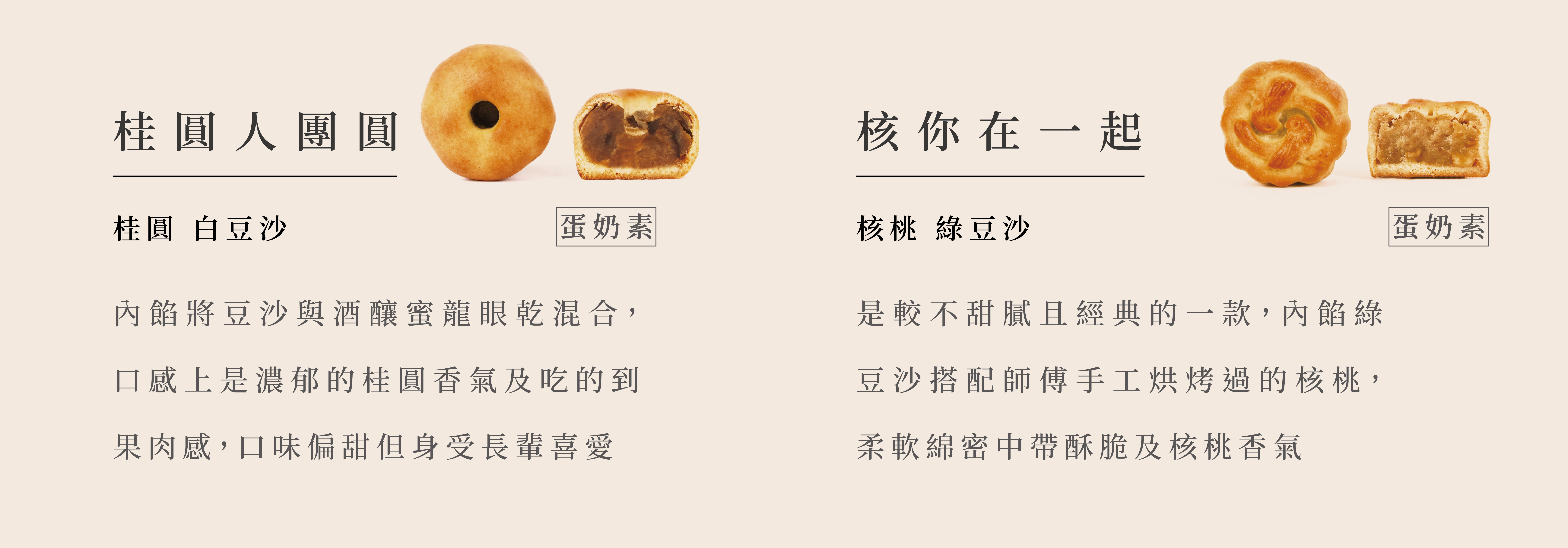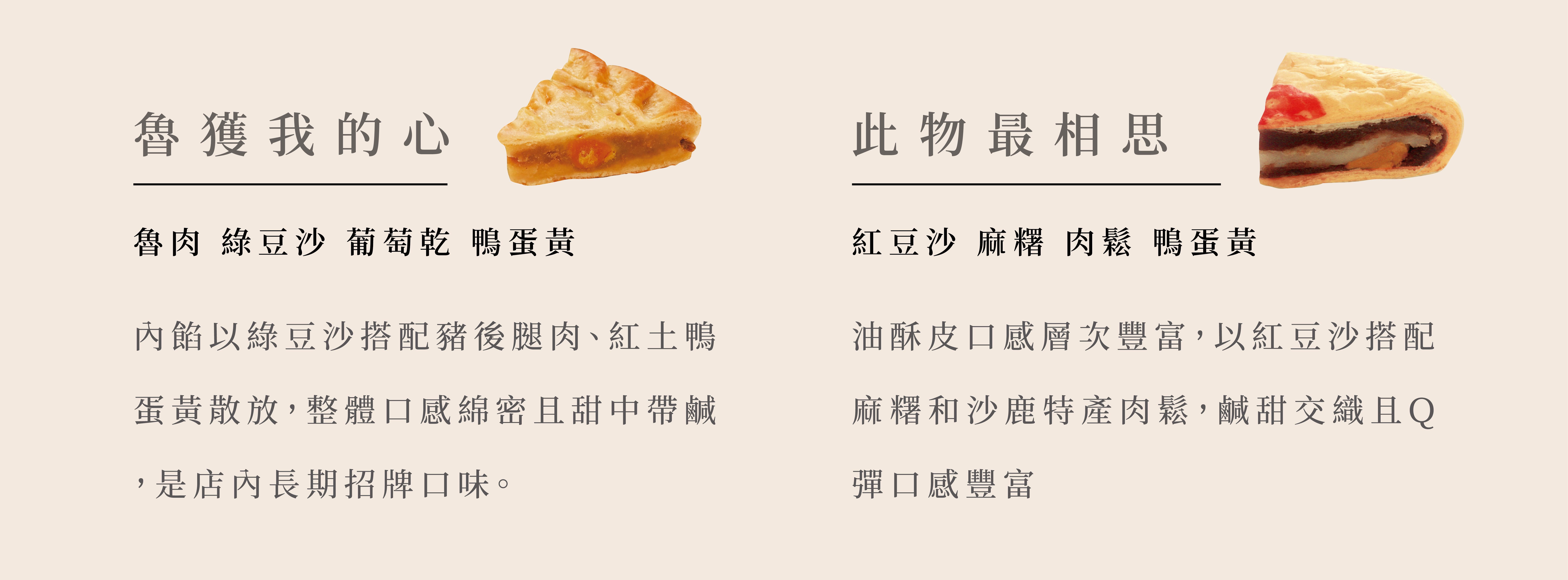 此物最相思,除了對於紅豆的別稱,南瓜子點綴寓意多子,整體風味堆疊最是經典,每一款餅、是月餅、也是漢餅,不管別稱是什麼,都是我們想推薦屬於當代的台式漢餅風味給您品嚐。