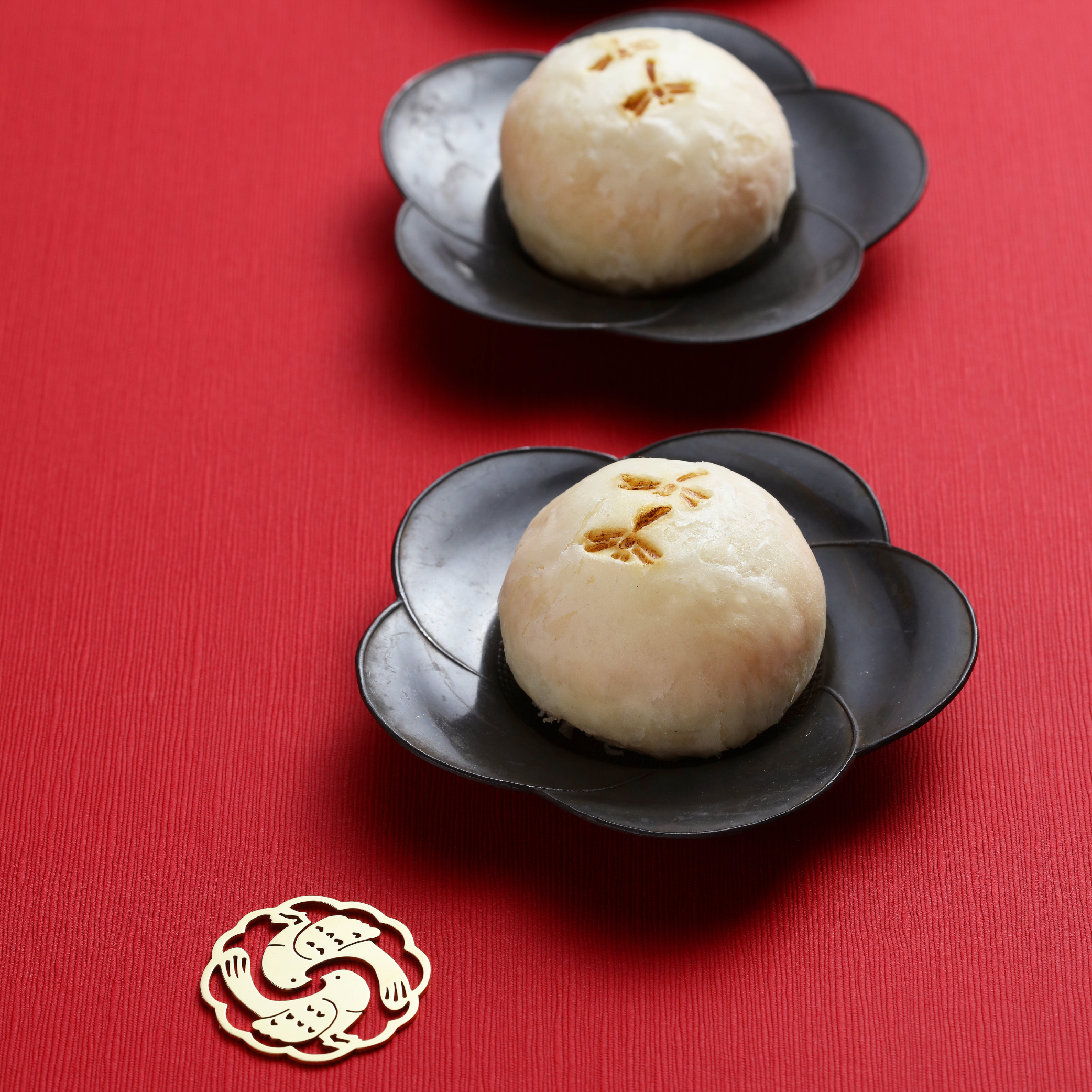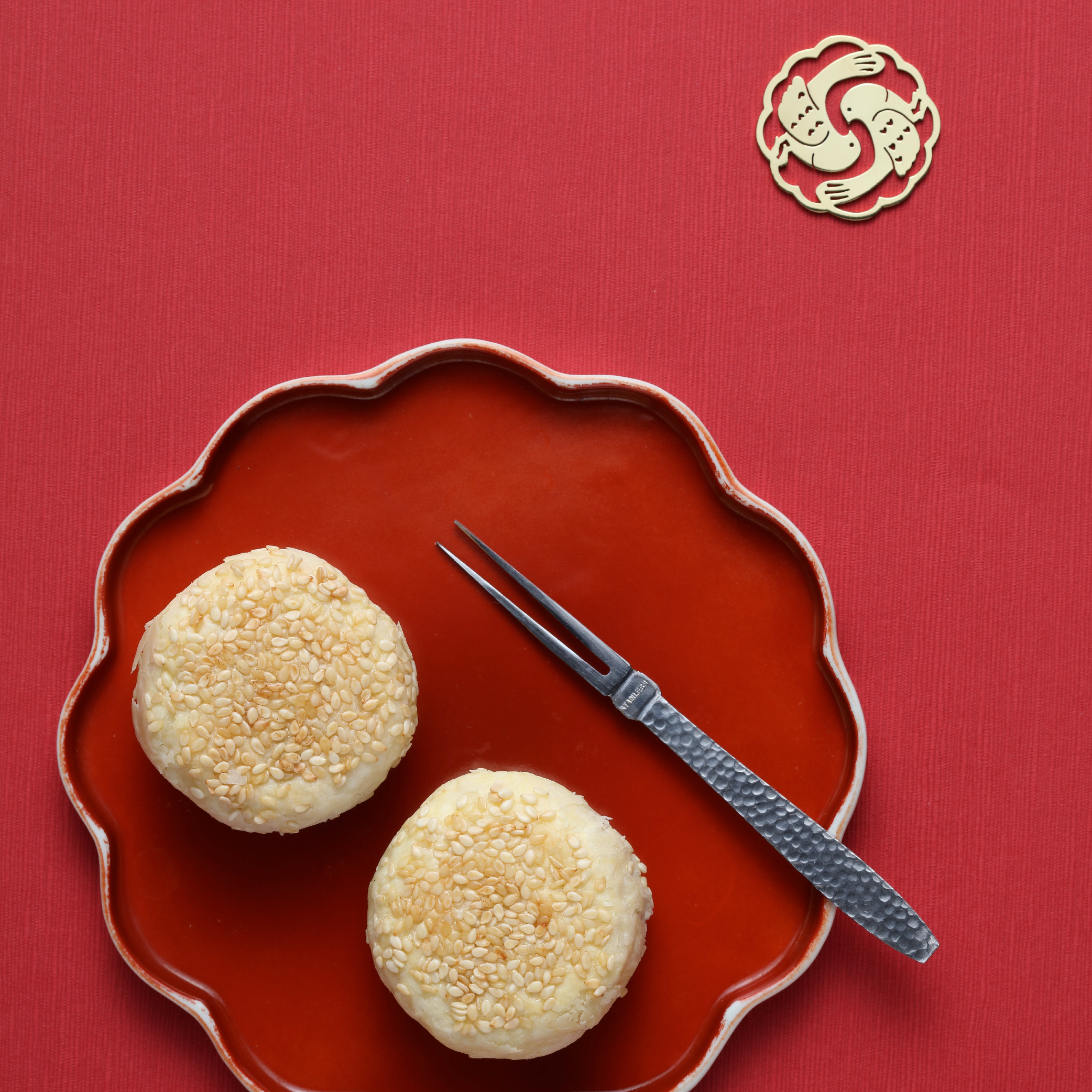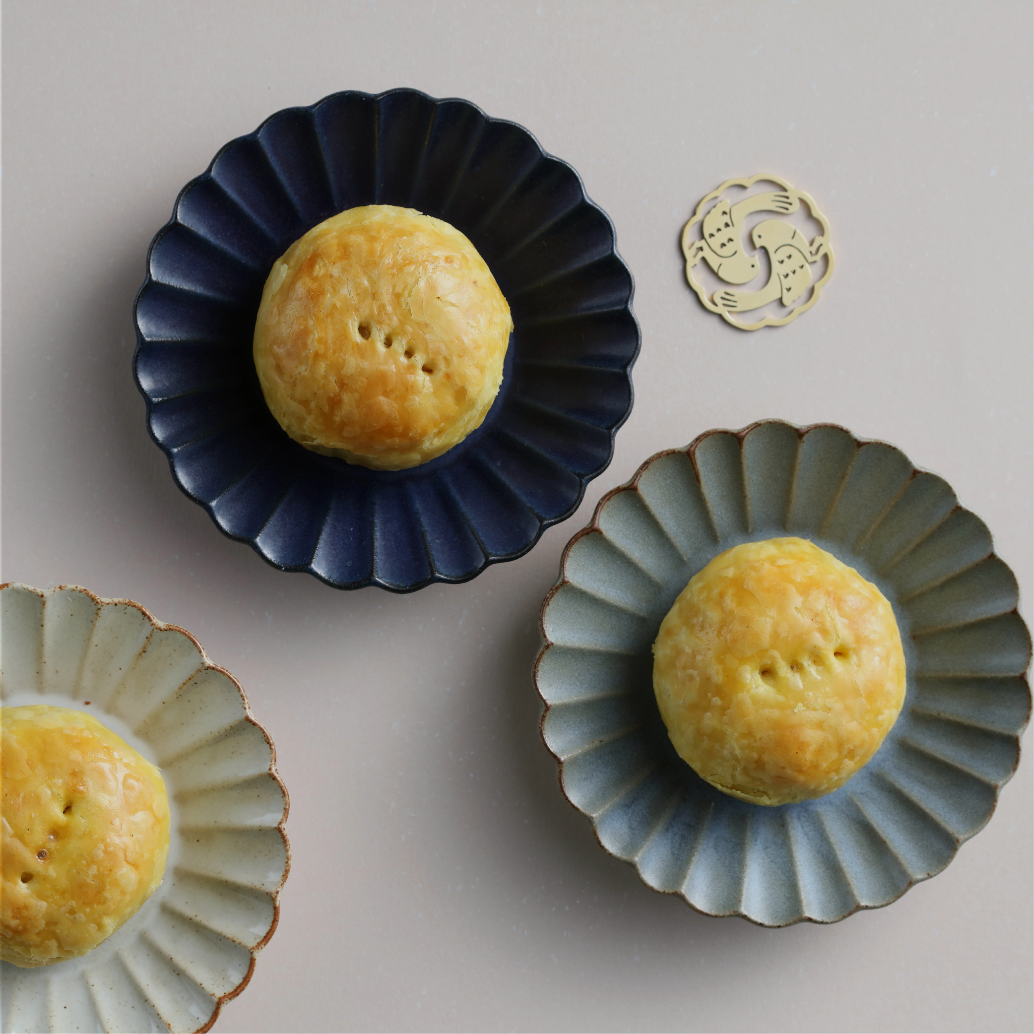 餅藝師保留了台中沙鹿海線的風味基底,融入奶香、豬肉、起士...層層堆疊,燙上象徵成對蜻蜓,寓意好合百年,也象徵漢餅傳承的祝福與期待回到日常之中。