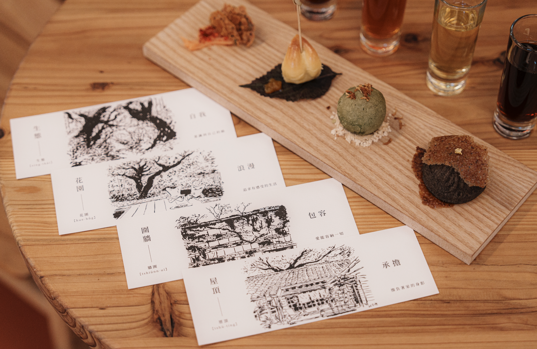 活動設計當中,莫過於「風味設定」與「美感呈現」最需思量,如何透過感官傳遞意念並連結生活?風味如何觸動人心?團隊討論之間,默契漸生,陸續分享出「場景、生活角色、人生滋味、酸甜苦辣鹹香、走一條人生的路徑 」互相激盪...